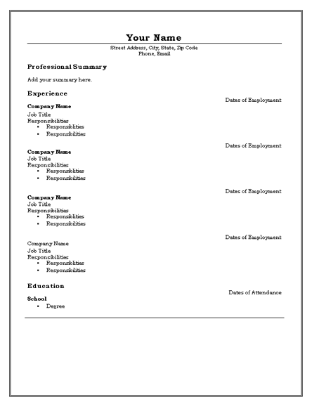 Do you need a resume template that could help you in getting your objective to inspire interviewer? This Chronological resume with border template is apt and suitable for your demands. This template is created in Word 2007 so that you can use it easily and edit it according to your needs. Beautifully organized and easily editable layout can save a lot of your time to write down your resume.