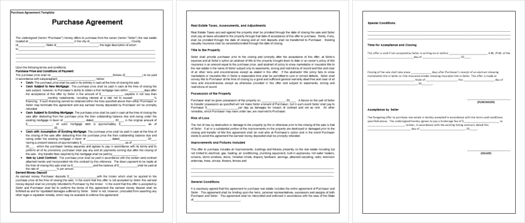 Consideration: States the consideration exchanged between parties, typically monetary but can also include services, goods, or other valuables.